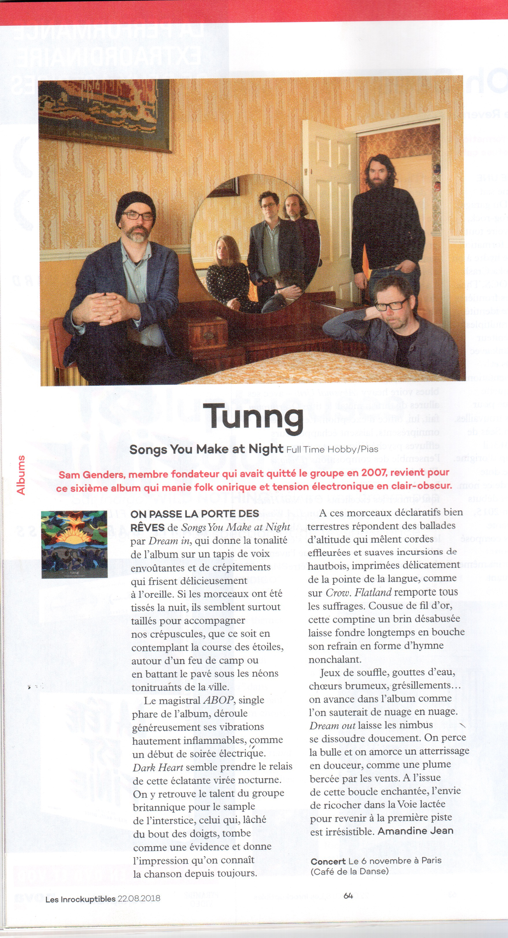 Album review of British band Tunng for French magazine Les Inrocks - 08/2018